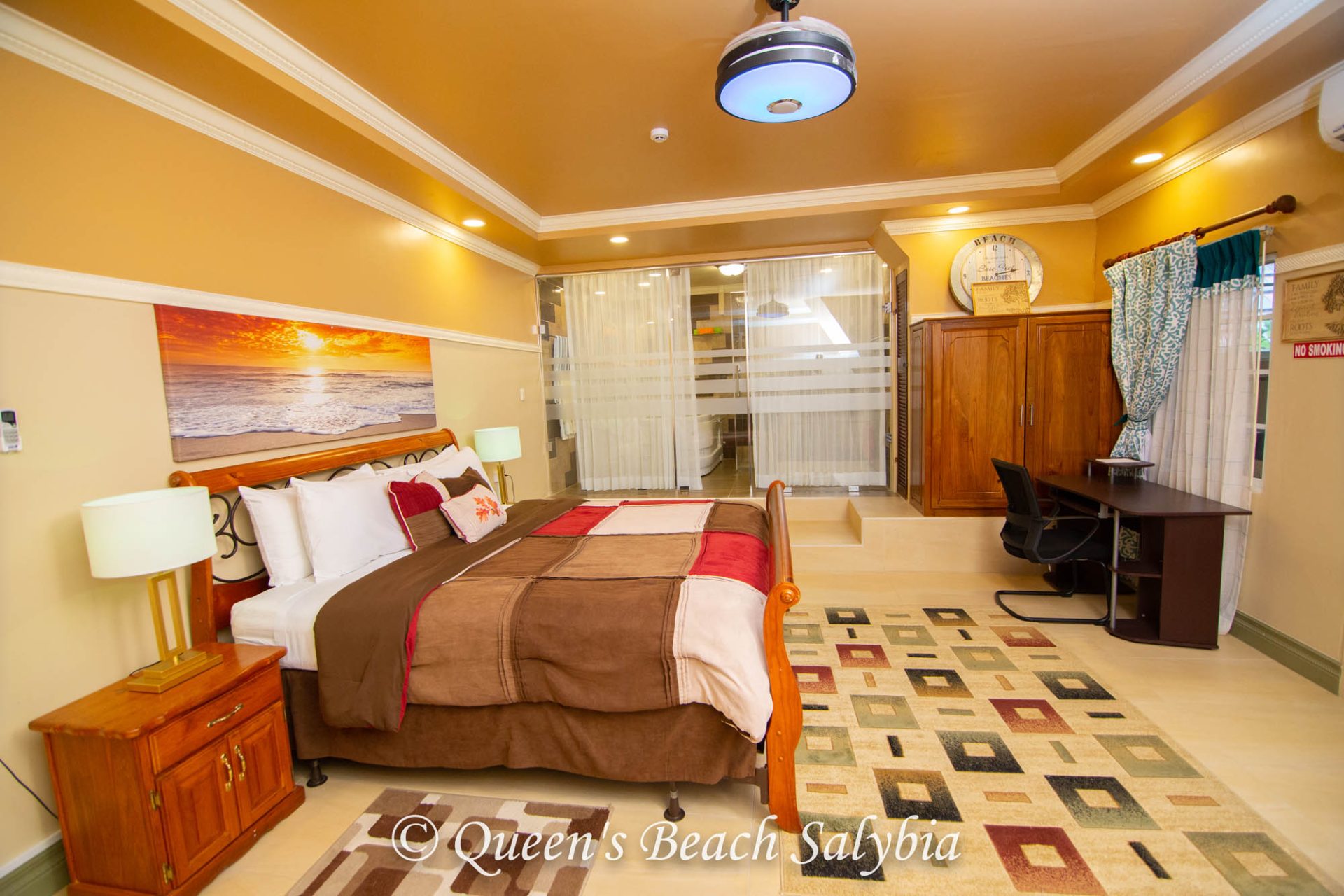 • Blue-tooth-controlled ceiling fan and music centre